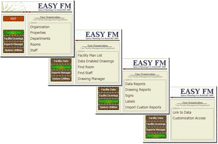 Easy FM, Space Planning for AutoCAD 2000, has four major components...